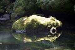 僕の夏休み(宿題絵日記番外編) 僕は予定変更を余儀なくされたので、追加の宿題を提出し、何とか五重の花丸をもらおうと思う。 @鹿児島県姶良郡隼人町・蛭児神社イザナギ,イザナミの2神の間にできたヒルコ(障害児であった?)を楠の舟に乗せて流し,その舟が漂着した場所がこの神社といわれている。ヒルコの乗った舟はやがて根付き,成長して大きな森となった。これが奈気木の杜(なげきのもり)であるといわれている。神社自体が鬱蒼としてして、何かしらの何かを感じてしまう場所であります。 A鹿児島県姶良郡牧園町宿窪田・塩浸温泉・坂本龍馬、おりょうの像寺田屋事件で怪我をした龍馬に西郷隆盛が鹿児島での湯治を勧め、妻のおりょうと一緒に霧島あたりを巡ったという史実を司馬遼太郎が「日本最初の新婚旅行」と紹介した。ここがその場所。川の端に積まれた湯船もあるのだが、なぁんやこれっ?と思われそうなので、ここでは割愛する。希望者あれば申し出てください。とはいえ、「日本最初の新婚旅行」とは眉唾物で、それ以前にも嫁さんもらったから、ちょっと旅でもと、思った奴は絶対にいるはずだと思う。だって、温泉でしょ。しかも新婚。ムフフフなのよねぇ。 B鹿児島県姶良郡牧園町・天降川で見つけた不思議な石ちょうどのこの上に蕎麦屋があり、ちょっと腹ごしらえきのこ蕎麦と、掻揚げが実に美味。残念ながら、店の名前は記憶せず。その窓の上から見えた、川の中の石。川面が反射して、不思議な光景を見せてくれた。 さて!僕の夏休みも収束し急速に昇華し始めている。あなたは、僕の宿題に、花模様の五重丸を、くれるでしょうか?(2005/8/21) |