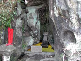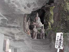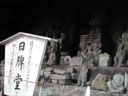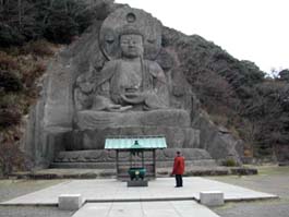 | 乾坤山 日本寺(けんこんざん にほんじ) 日本寺は今をさかのぼること約1300年前の725年(神亀2年)6月、聖武天皇の勅詔を受けて、高僧行基菩薩によって開かれた関東最古の勅願寺である。正しくは乾坤山日本寺と称される。 眼下に東京湾や三浦半島を見下ろし、富士山をも一望できる名勝鋸山。その広大な境内には1553体もの石仏が安置されている「東海千五百羅漢」や「百尺観音」などの奇岩がいっぱいあり、見ごたえある宝庫といえる。 大晦日の午後の約3時間。険しい坂や石段を上り下りしながら、気持ちよい汗をかいた「歩き納め」のひとときであった(2003/12/31)。 |