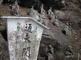 | 東海千五百羅漢 当山曹洞第9世である高雅愚伝道師の発願により、上総櫻井(現木更津市)の名工、大野甚五郎英令が1779年(安永8年)から1798年(寛政10年)に至る前後21年間に生涯をかけて、門弟27名とともに1553体の石仏を刻んで奇岩霊洞の間に安置したもの。 中国・懐安大中寺の八百羅漢を凌ぐもので、世界第一の羅漢霊場として海外にも知られているかけがえのない文化財である。 惜しむらくは、明治維新の廃仏毀釈以来、興廃したままで現在に至っていること。現在進められている「羅漢様お首つなぎ」などの復興作業の進展が期待される。 |