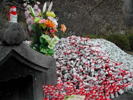お願い地蔵尊 大仏広場に安置されている「お願い地蔵尊」は様々なお願いがかなえられると尊崇を集め、お願いする人の氏名を書いた小さなお地蔵が山となって奉納されている。 |