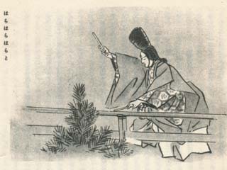 ![]() もとの小袖は シテ『これハ自然居士と申す説教者にて候が。説法の場さまされ申す。恨み申しに来りたり』 ワキ『説法にハ道理を演べ給ふ。我等に僻事なきものを』 シテ『御僻事とも申さばこそとにかくに。元の小袖ハ参らする。舟に離れて叶はじと。裳裾を波に浸しつゝ。舷に取り付き引きとゞむ』 |